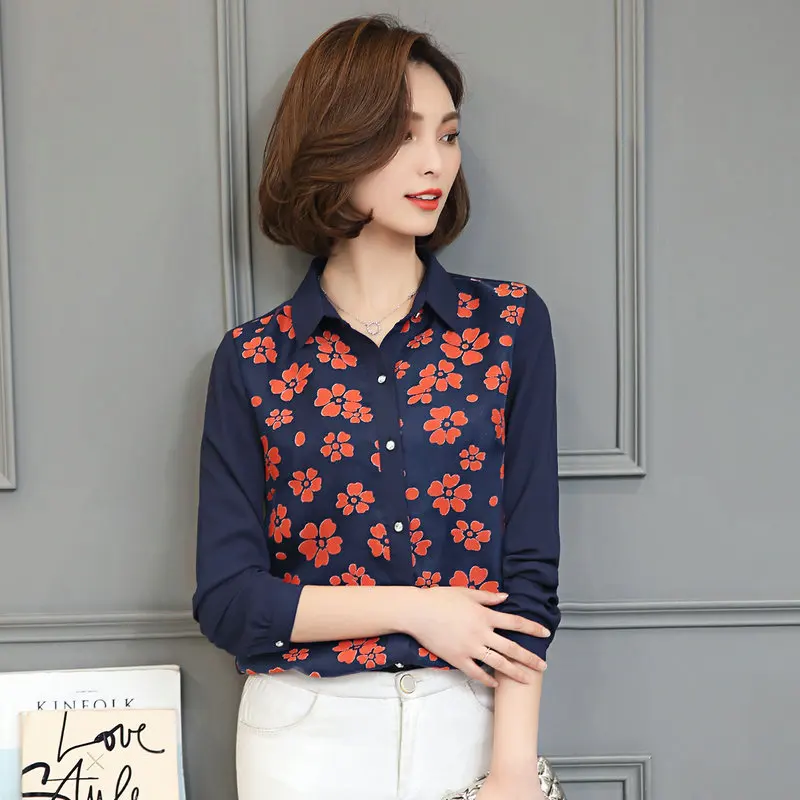 Middle Aged Women Casual Shirts Red Green Orange Flower Printing Turn Down Collar Long Sleeve Spring Autumn Top Mature Woman NewBuy Now On Aliexpress