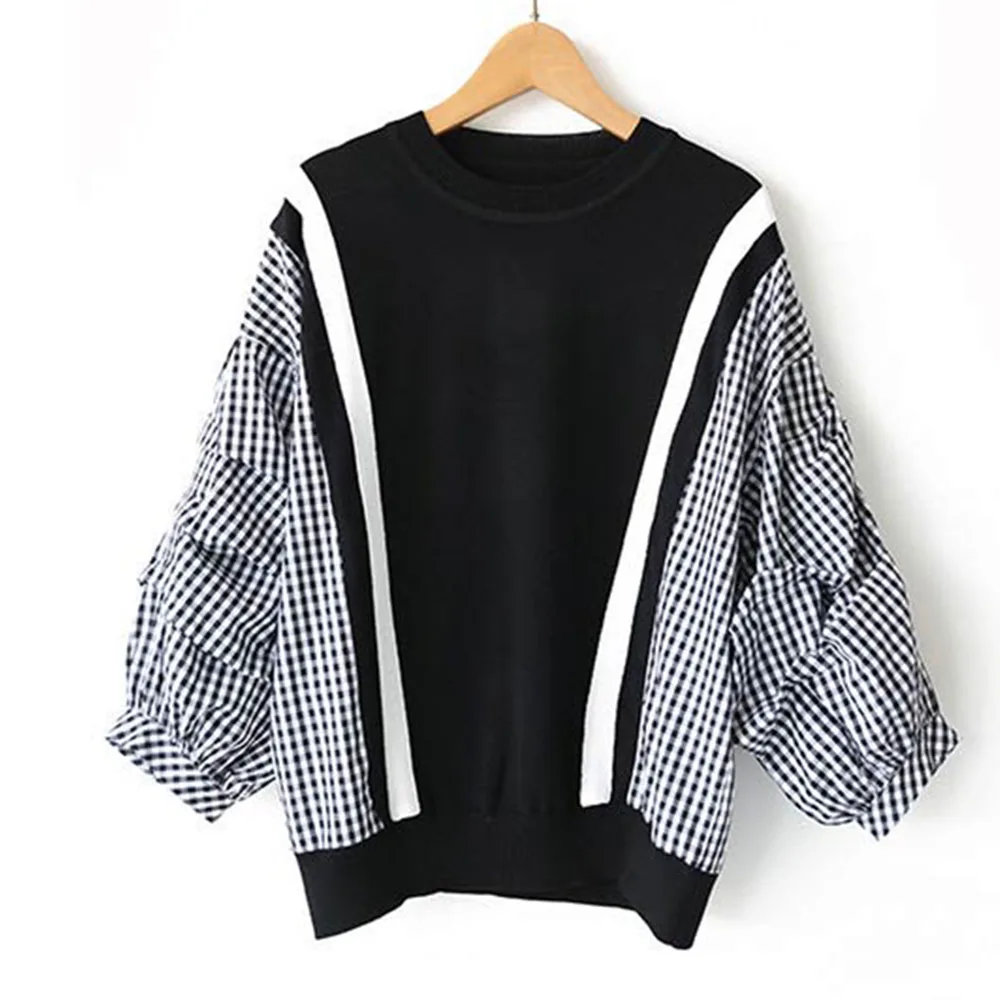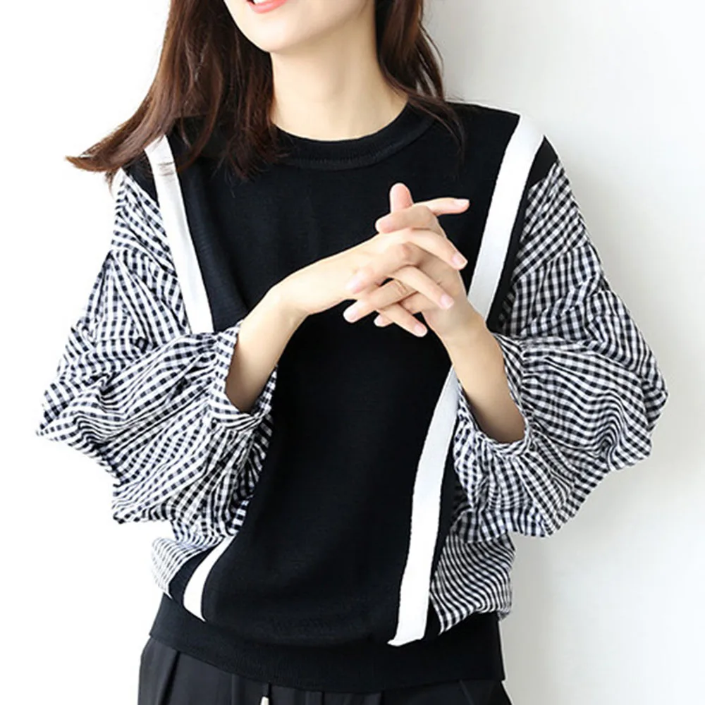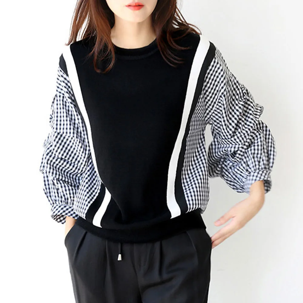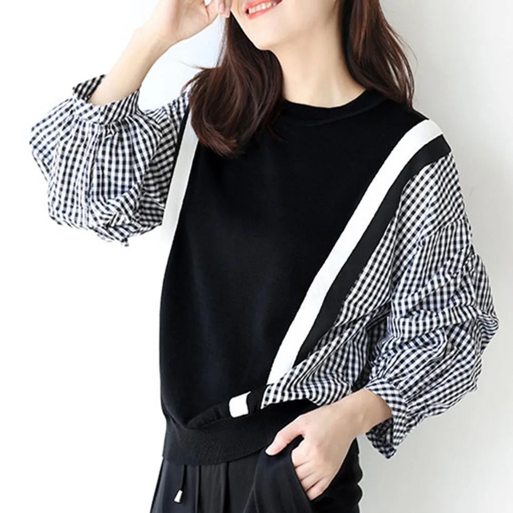 | Spring Long Sleeve Women Blouse 2020 Korean Fashion Plaid Patchwork Shirts Office Ladies Loose Causal Pullover Female Tops |