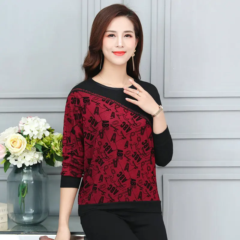 Fashion Women Spring Blouse Sequined Lace Patchwork Red Black Chic Classy Top Middle Aged Woman Casual Clothes 2020 New Arrival