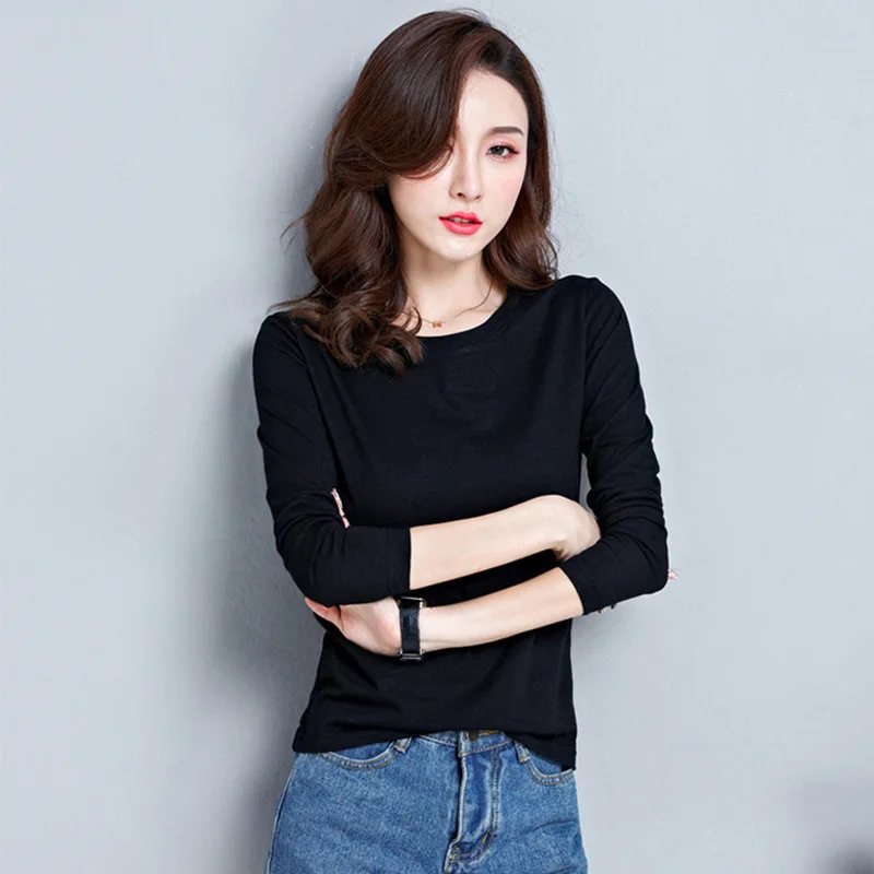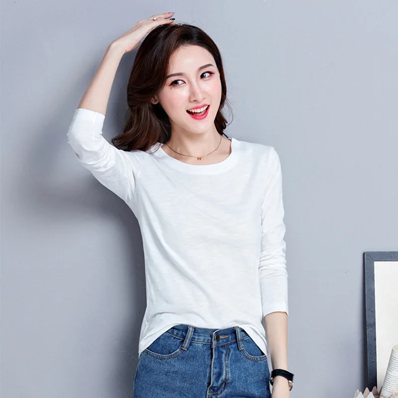 | Semfri Bamboo Cotton Womens Top Blusas Spring Autumn O-neck Solid Color Blouses Long Sleeve Casual Bottoming Shirt 2020 |