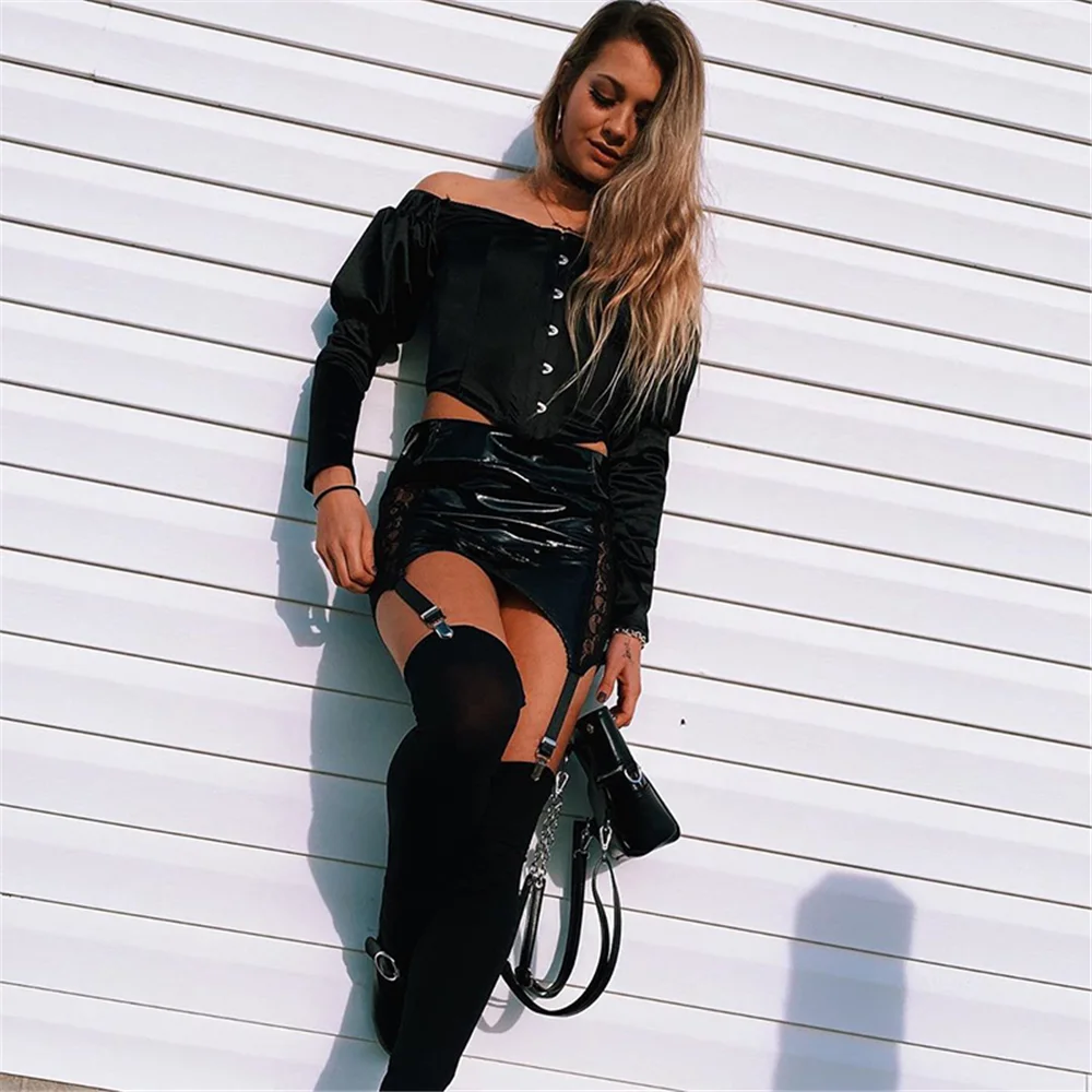 | Three Ratels 2020 New Fashion Solid Black Puff Sleeve off-shoulder Blouse Slim Satin Slash Neck Crop Top Ladies Trend Streetwear |